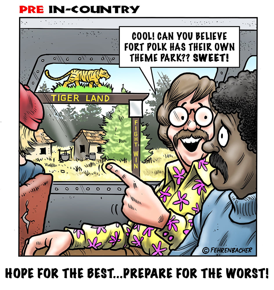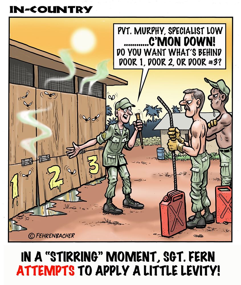 Phil enlisted in the Army in 1965 where he served for years in Vietnam.  He became a graphic designer and has worked for the state of Oregon for 26 years.  He retired in 2003 and started the Cartoon "In-Country".  The cartoons reflect his experiences during his tour of duty in South Vietnam.