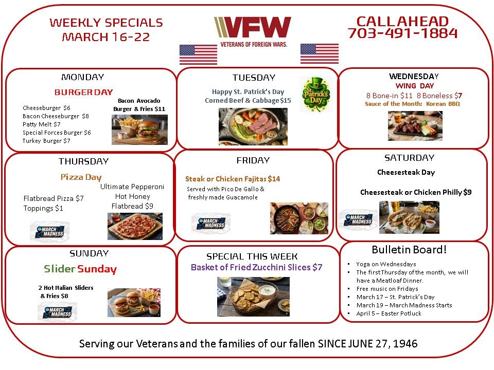 CLICK HERE FOR THE POST'S BRAND NEW AUGUST 'WARRIORS STILL SERVING' CANTEEN MENU